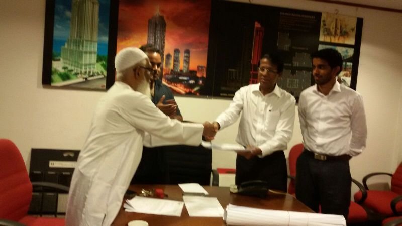 On this occasion, a small ceremony was held by the Orphanage at the project site, which was presided by Mr.DAS Mohamed, the President, Board of Management, who started the project by praying 2 Rakath of "ISTHIKHARAH"' in the presence of the Board Members, some Muslim personalities, Philanthropists, and the Architects/Engineers concerned.